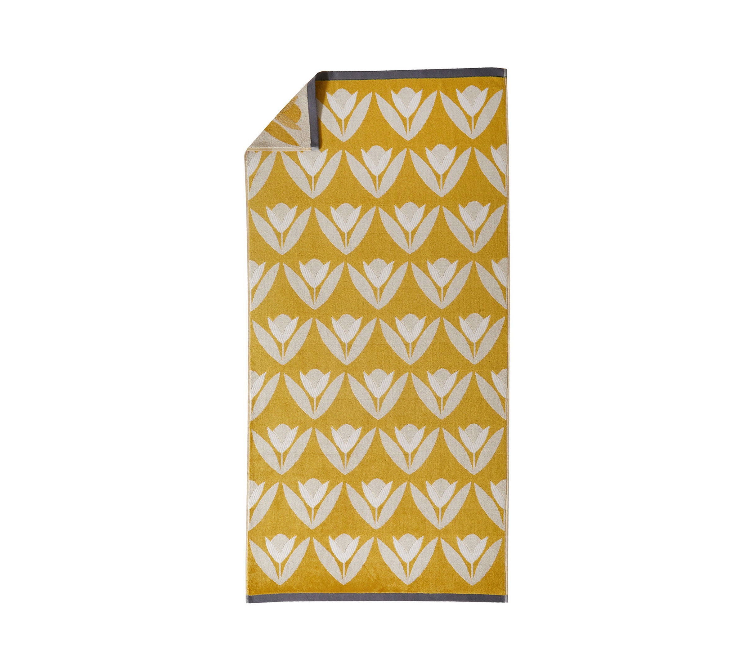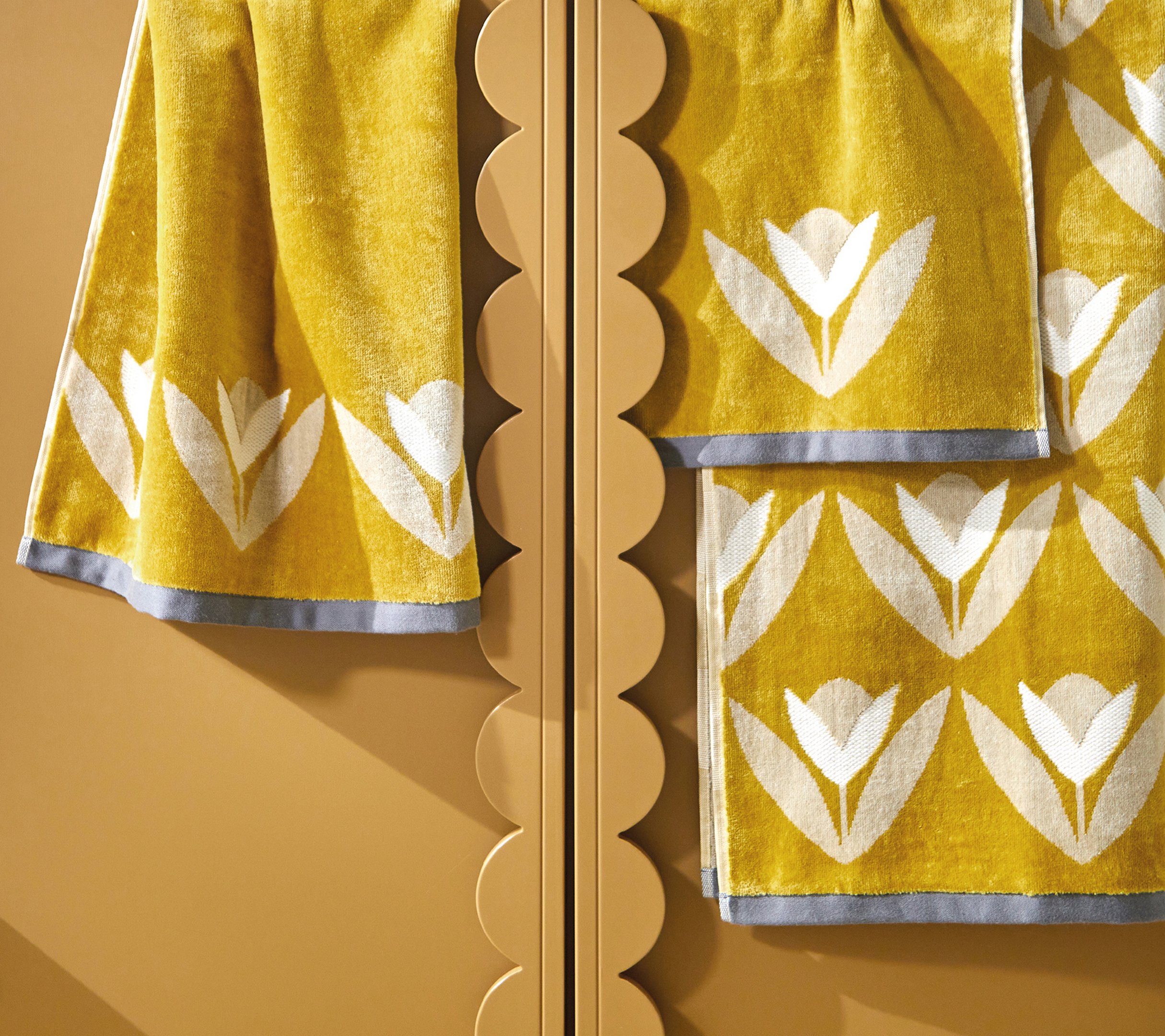 Drap de douche 70/130 cm en éponge 100% coton 550 gr . Enveloppez-vous dans le confort moelleux et la qualité du drap de douche SCION LIVING et découvrez notre modèle TULIPA ocre. Cette éponge est réalisée avec une face en velours de coton pour bénéficier d'une exceptionnelle douceur, et l'autre face en bouclette pour garantir une parfaite absorption Les grands motifs de tulipes stylisées font de cette éponge un modèle utra chic et moderne. Vous allez adorer vous y lover !