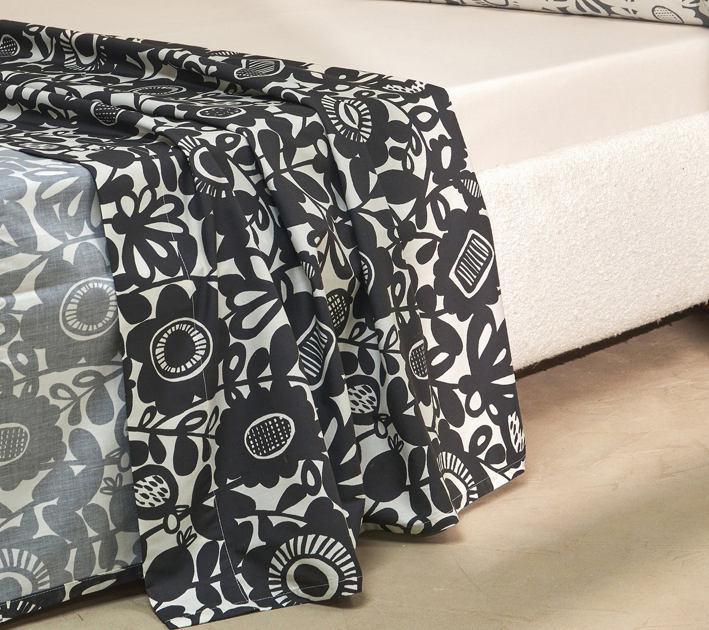 Le drap plat KUKKIA Graphite apporte une touche d'originalité graphique à votre chambre. Imprimée sur notre percale de coton douce et confortable, elle révèle un motif floral stylisé, à la fois moderne et intemporel. Le contraste des couleurs crée un effet visuel saisissant, pour une ambiance affirmée et élégante.