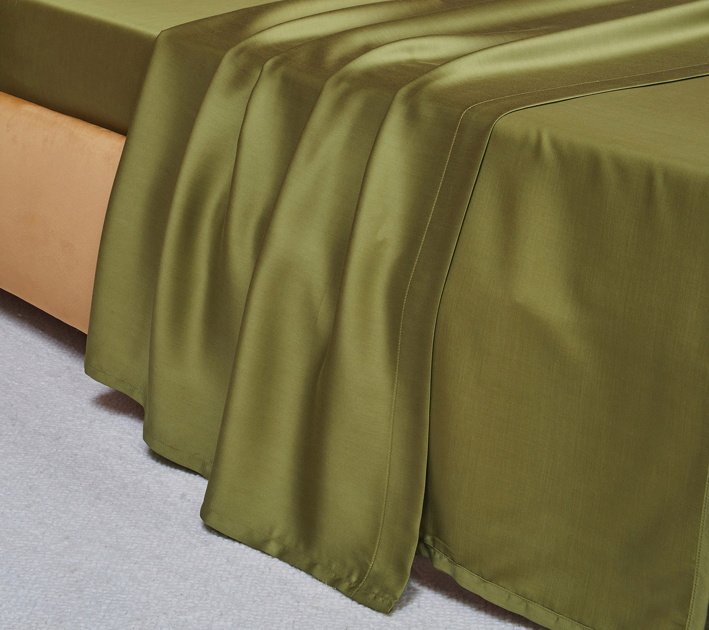 Drap 280/320 cm Satin Tencel 120 fils/cm² . Douceur naturelle et élégance colorée : notre gamme de linge de lit MOUSSON Romarin en satin tencel 120fils/cm² en satin Tencel.