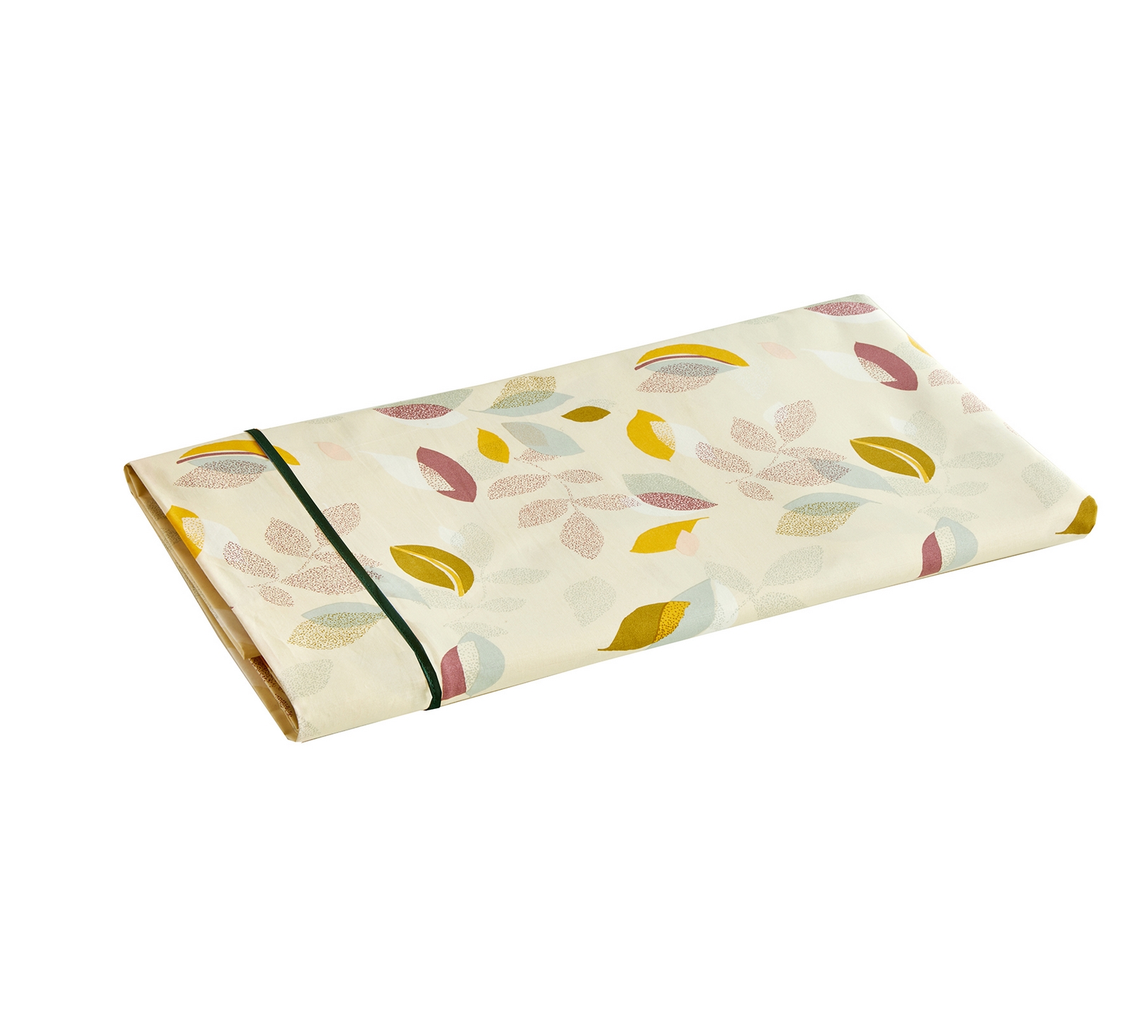 Drap 180/290 cm Percale 100% coton peigné 80 fils/cm² vive et chatoyante s’anime d’un semi de pétales multicolores travaillées en aplat et en pointillé en coloris kaki , confectionné dans les Vosges