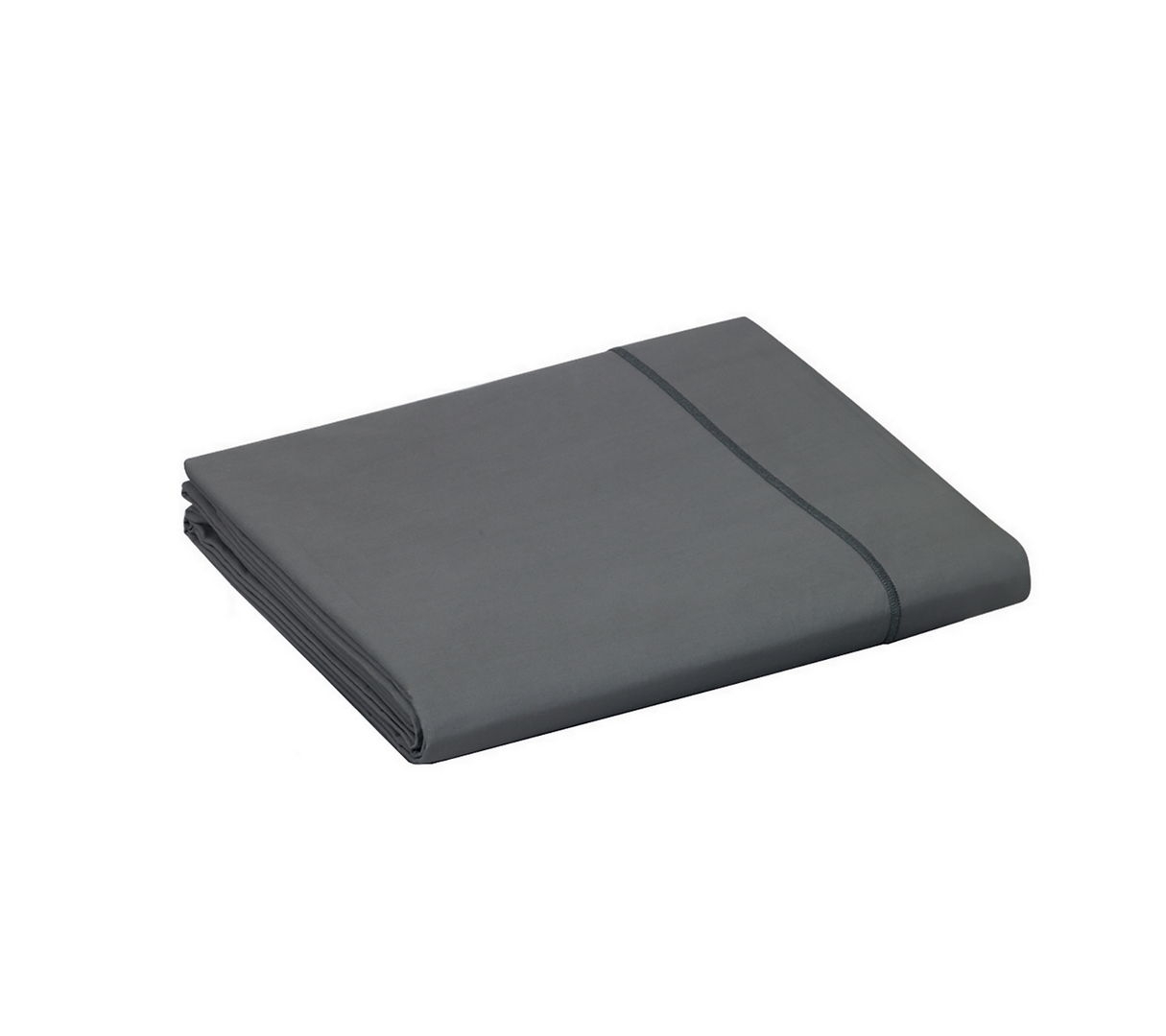Teint et fabriqué dans les Vosges, ce drap est proposé avec un volant plat et une broderie bourdon ton sur ton.