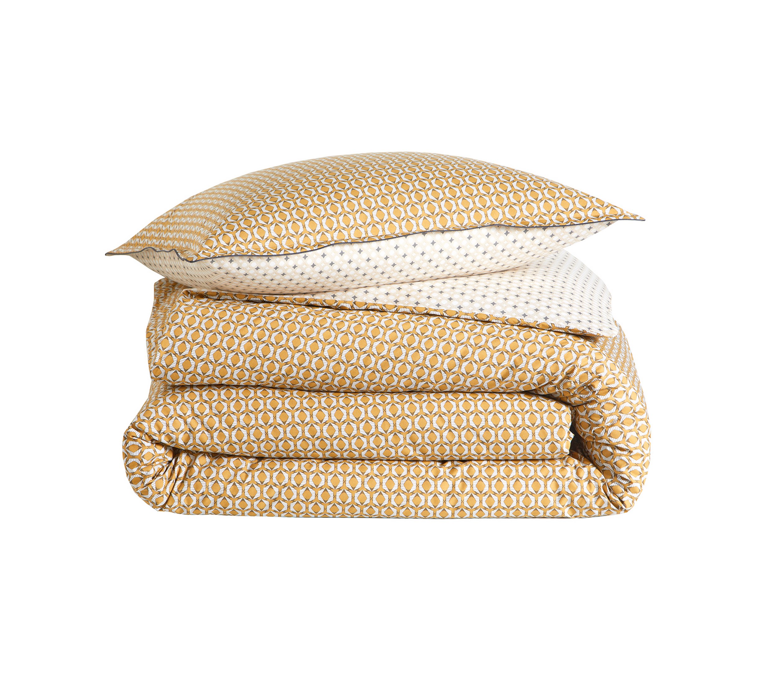 Conçue pour ceux qui apprécient le raffinement et le confort, la parure DANDY Ocre associe des petits motifs géométriques à un design contemporain, créant une harmonie parfaite entre tradition et modernité. Fabriquée à Gérardmer, sur une percale de coton au tissage extrêmement fin et serré, 80 fils/cm²