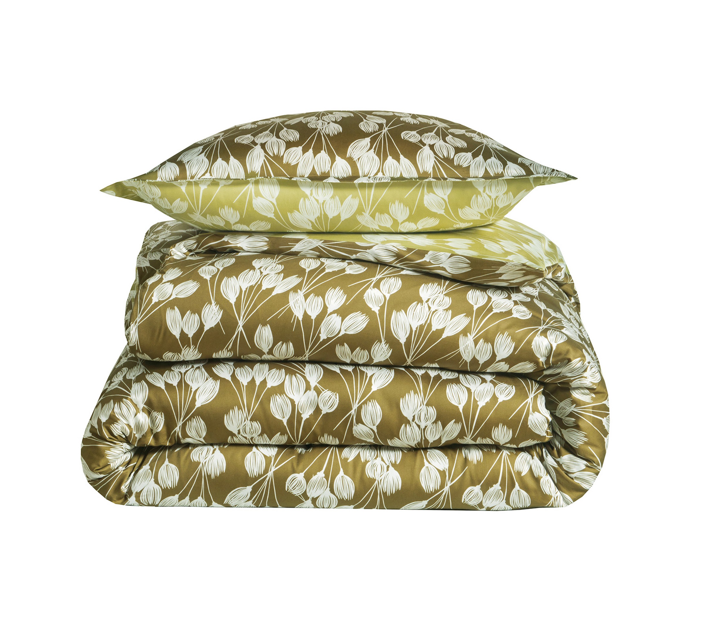 La parure ENVOLEE Kaki séduit grace à l’élégance du double imprimé, pour un lit qui se métamorphose selon l’humeur. Une envolée de tulipes stylisées s’épanouit sur un satin de coton au toucher soyeux. Chaque face de la parure dévoile une variation de couleurs, sublimée par le contraste subtil d’un kaki végétal. Ce motif aérien apporte une note florale et contemporaine, insufflant fraîcheur et modernité à votre chambre. ENVOLEE kaki est la parfaite alliance entre style et confort, pour une chambre à l’allure unique. Fabriquée à Gérardmer, les couleurs sont sublimées par la qualité du satin de coton ultradoux au tissage extrêmement fin et serré, 120 fils/cm².