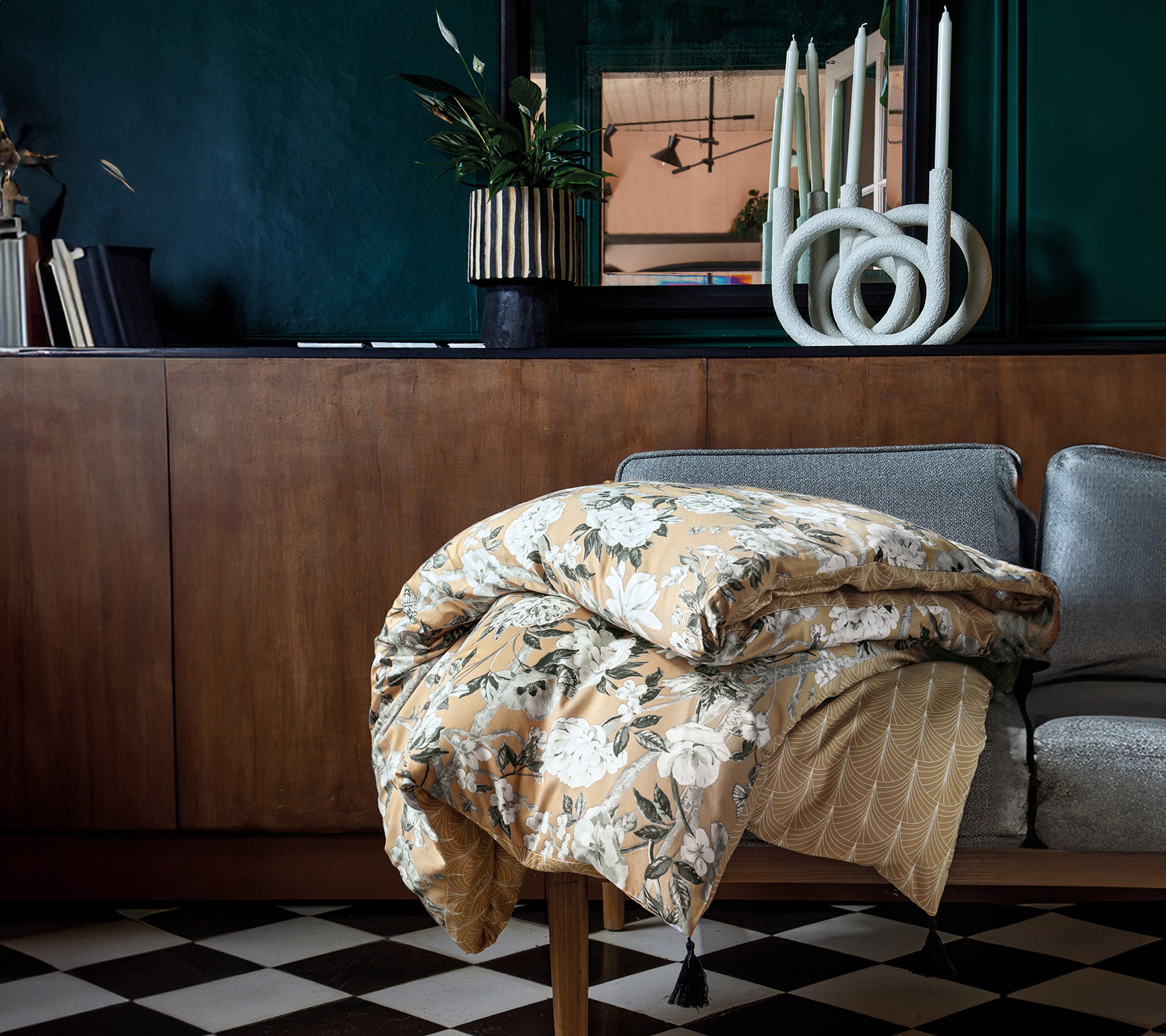 Impérial Chanvre, ce modèle subtilement sophistiqué marie des motifs floraux en noir et blanc avec des fonds aux teintes naturelles, créant une ambiance harmonieuse et raffinée. Chaque fleur, peinte avec une délicate précision, se détache magnifiquement sur un fond chanvre pour une atmosphère sereine et élégante. Fabriqué à Gérardmer, sur un satin de coton ultradoux au tissage extrêmement fin et serré, 120 fils/cm²