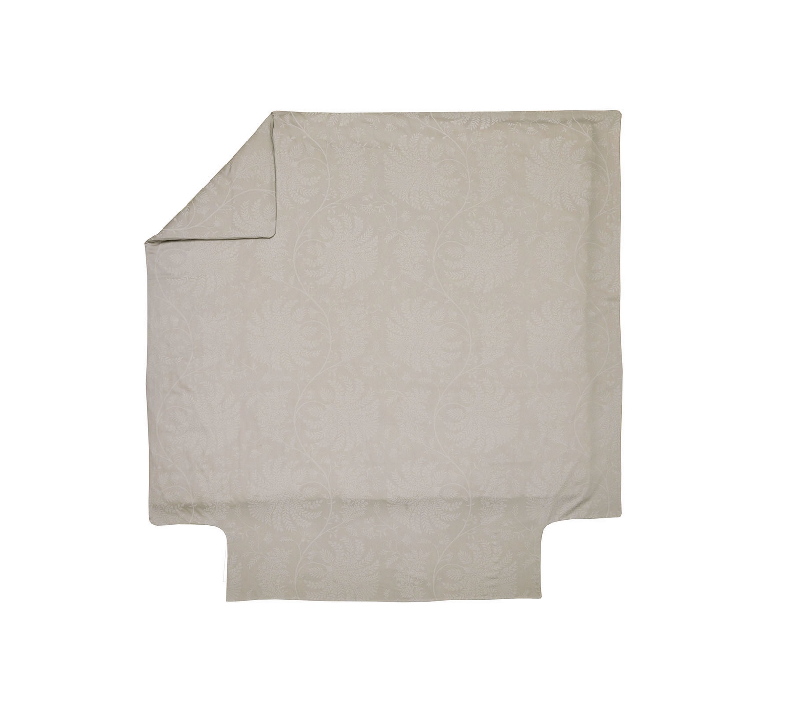 • Housse de couette : 2 faces tissées de motifs ornementaux travaillés en volutes et délicatement posés sur un fond satin uni, finition rabat cheminéee
