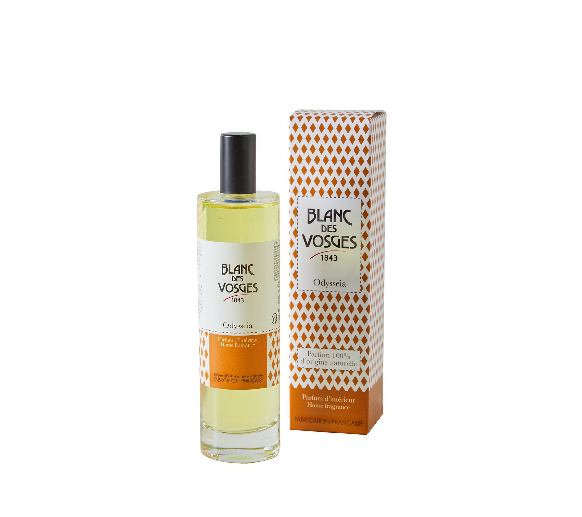 Craquez pour le parfum d'ambiance ODYSSEIA un parfum d'humeur franche et boisée, un écrin protecteur qui parle d'évasion, de voyage au coeur de soi et de sérénité. Vaporisez le parfum d'ambiance ODYSSEIA dans votre maison et laissez vous ennivrer par les notes épicées et délicatement boisées où se mèlent généreusement la gourmande tonka, le patchouli rebelle et le vétiver d'Haiti. Toutes les senteurs sont d'origine naturelle. Un talisman parfumé à diffuser sans cesse pour propager le lâcher prise!