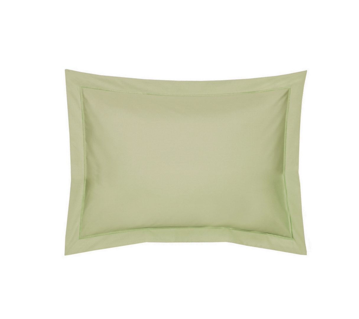 Teinte et fabriquée dans les Vosges, la taie d'oreiller est proposée avec un volant plat de 4 cm tout autour et une broderie bourdon ton sur ton.